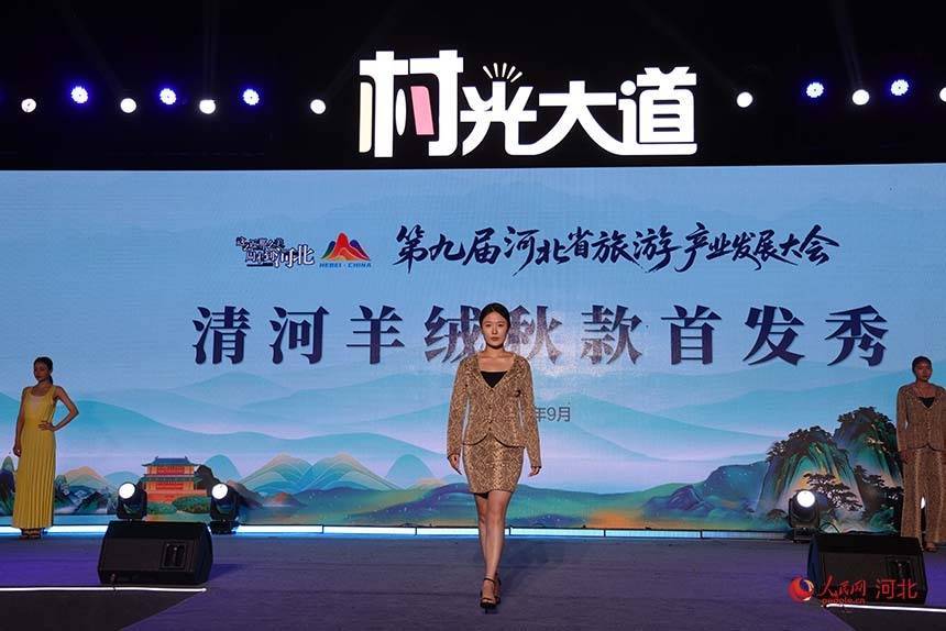 “村光大道”百姓舞台汇聚京东大鼓、豫剧等非遗表演和小轮车特技等现代节目。清河羊绒产业作为河北制造业的靓丽名片,通过精彩的T台秀展示其创新成果。红太集团带来的戒指绒围巾等高端产品,彰显了“世界羊绒看中国,中国羊绒看清河”的产业实力。
