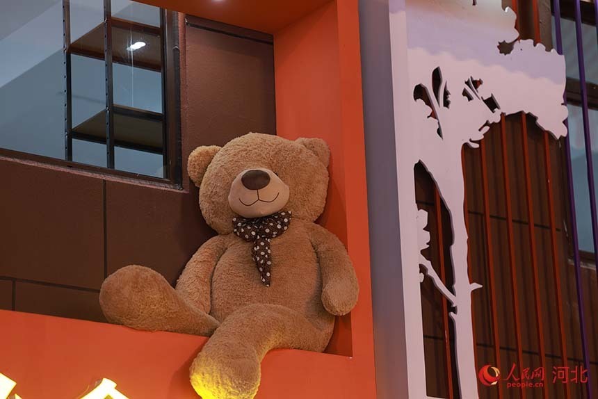 “暖意绒绒”主题展区通过巨型泰迪熊“抱抱”等环节,用毛绒、棉布等温暖元素,为游客传递温暖、治愈的情绪价值。5家企业带来的176款产品,展现了河北毛绒玩具产业的设计创新和市场竞争力。